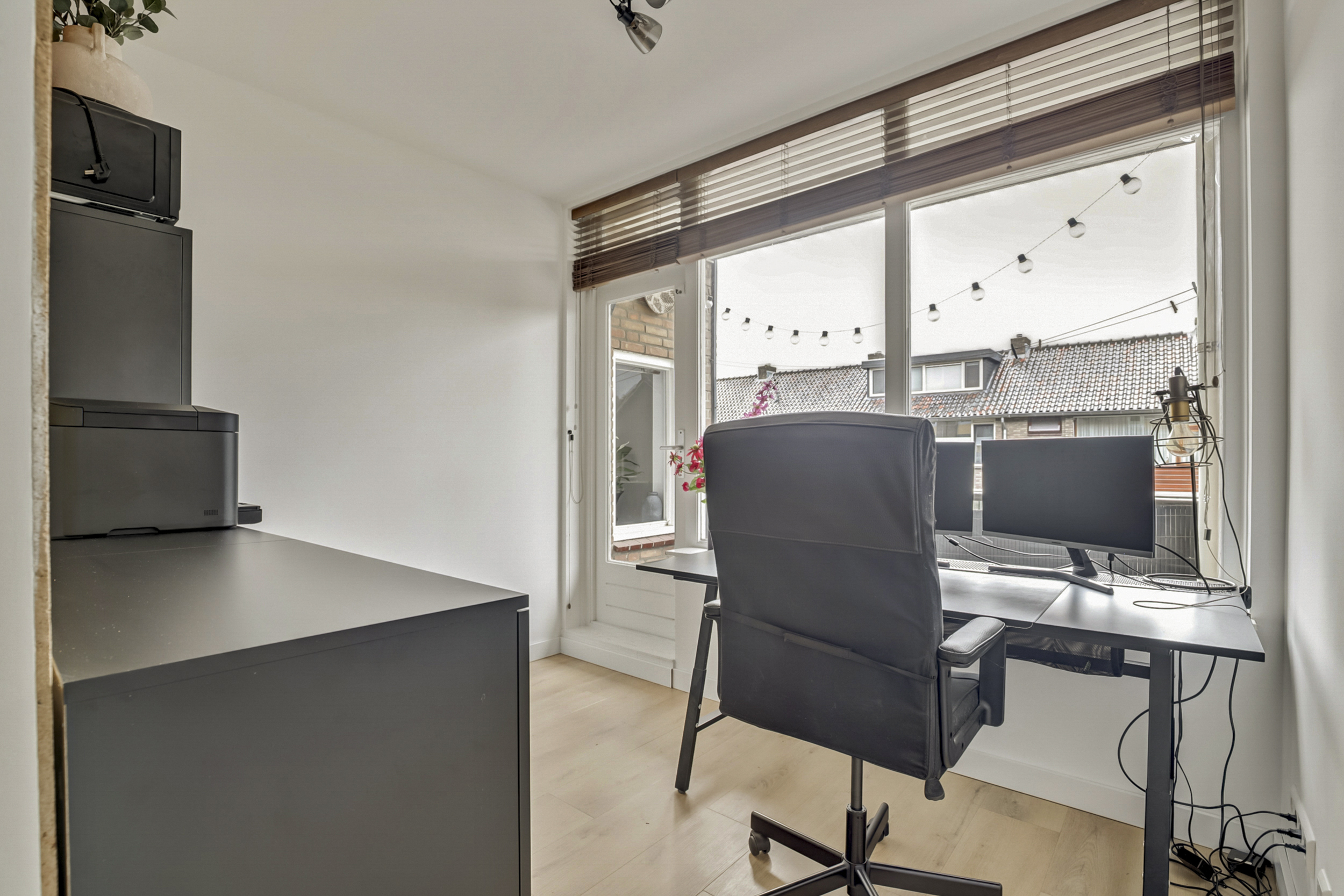 Via de eigen entree bereikt u de hal met trapopgang en meerdere vaste kasten. Hier bevinden zich twee goed bemeten slaapkamers, ideaal als logeer-, werk- of hobbykamer. Slaapkamer aan de achterzijde heeft toegang tot de fraai aangelegde tuin. Daarnaast vindt u op deze verdieping een praktische berging en de aansluitingen voor wasmachine en droger. De grote ramen zorgen voor
