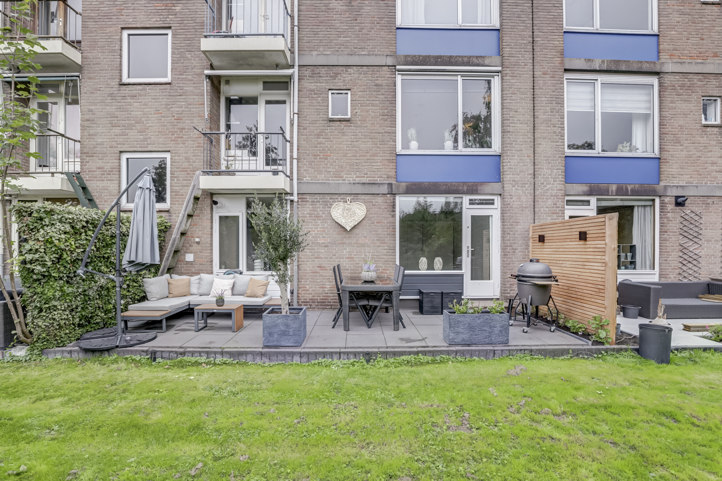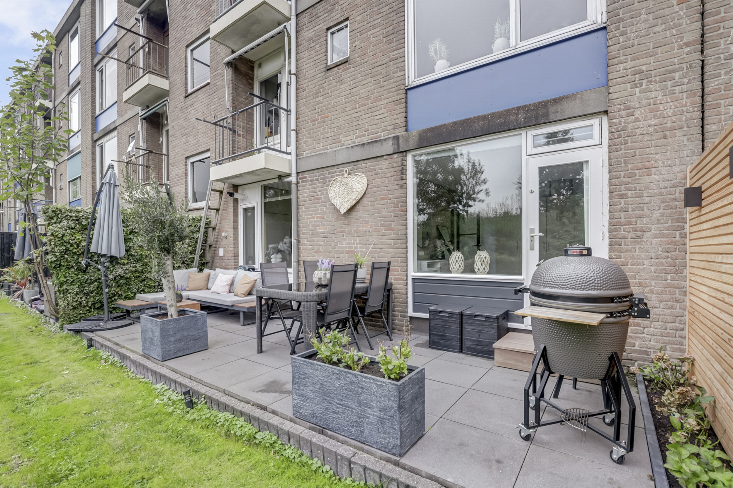 De tuin is een absoluut pluspunt. Deze is fraai aangelegd met een groot terras, groene erfafscheiding en voldoende ruimte voor een lounge- of eethoek. Dankzij de ligging geniet u hier van de middag- en avondzon. Een heerlijke plek voor een barbecue of een ontspannen borrel aan het einde van de dag. Het bestrate gedeelte is in privé gebruik, het gras behoort bij de gezamenlijke tuin.