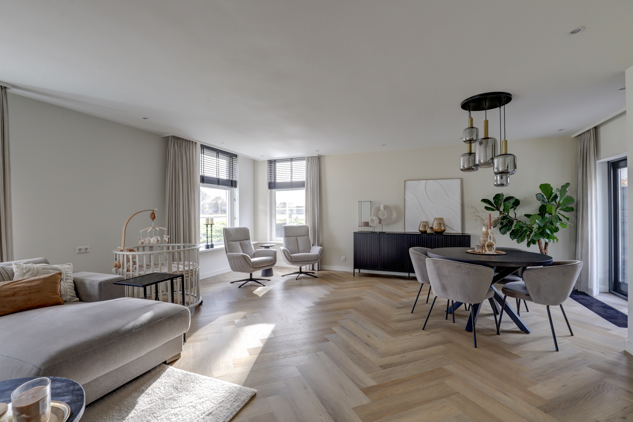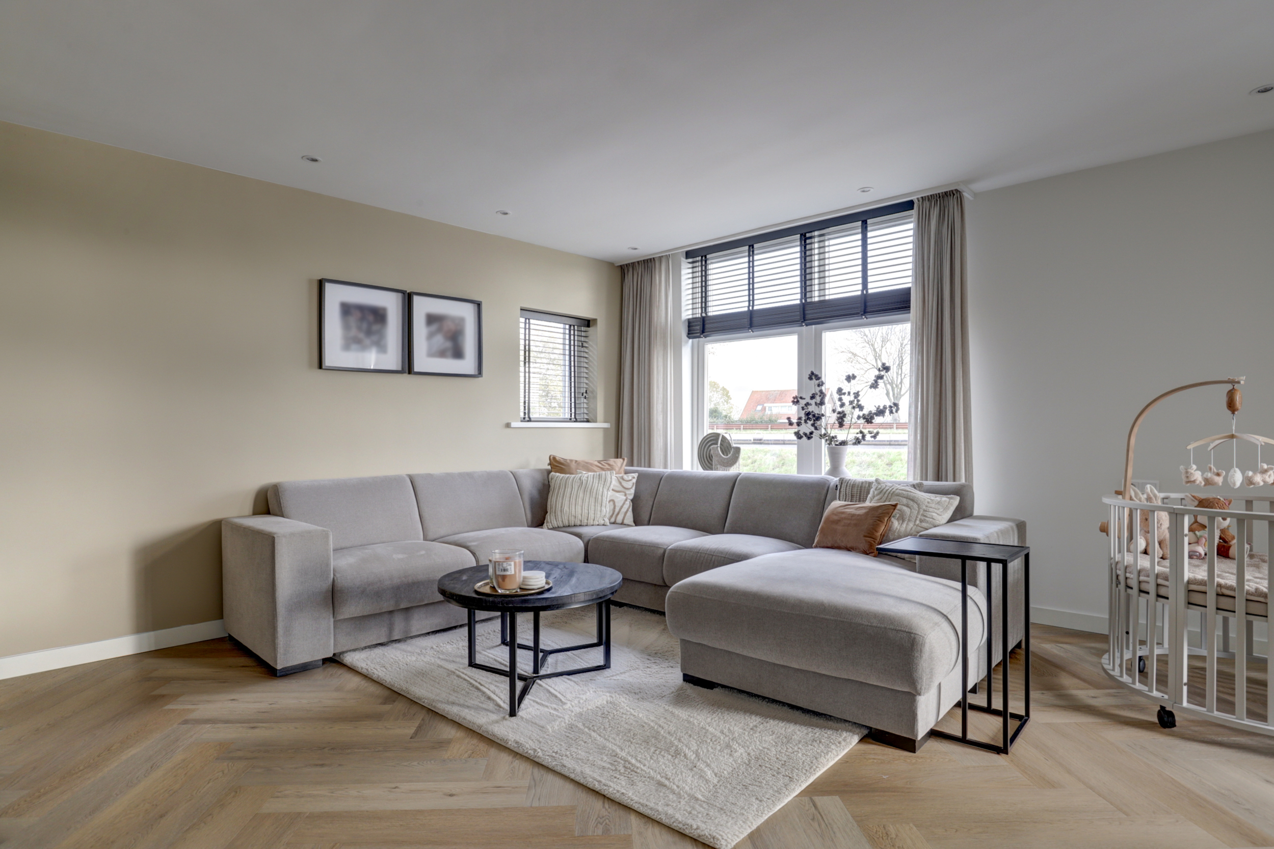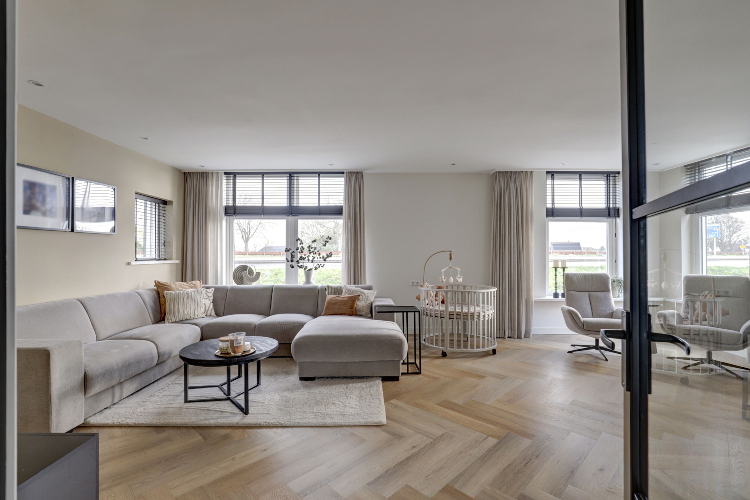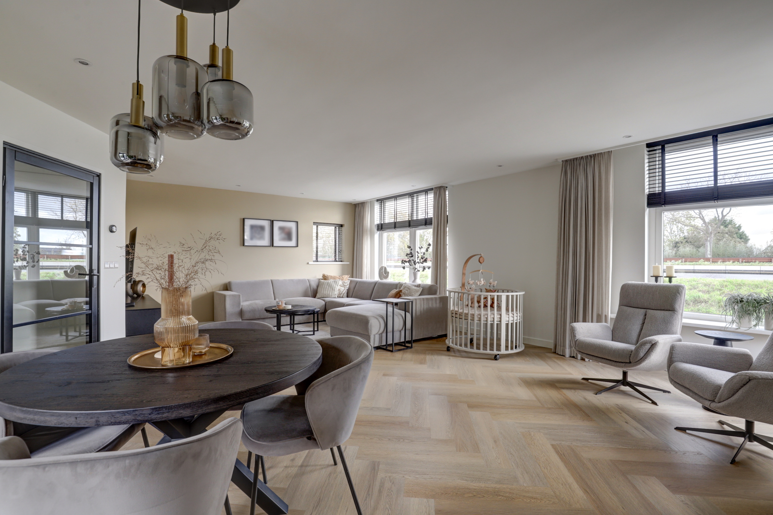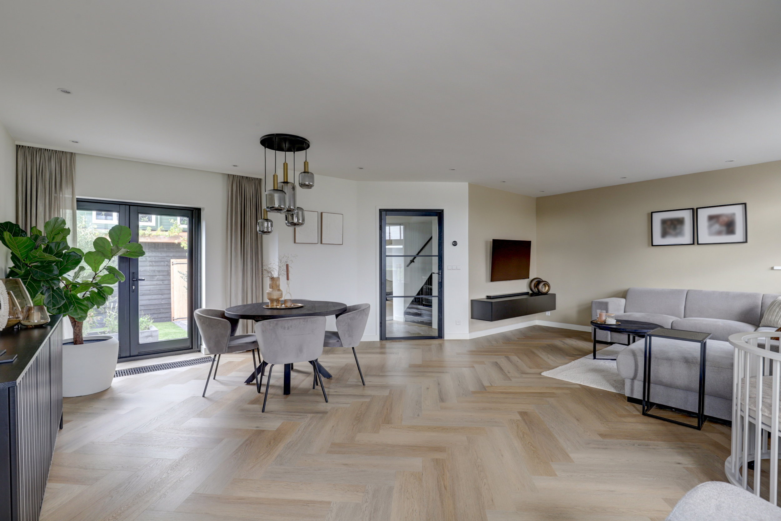 • Ruime woonkamer met visgraatvloer en veel lichtinval