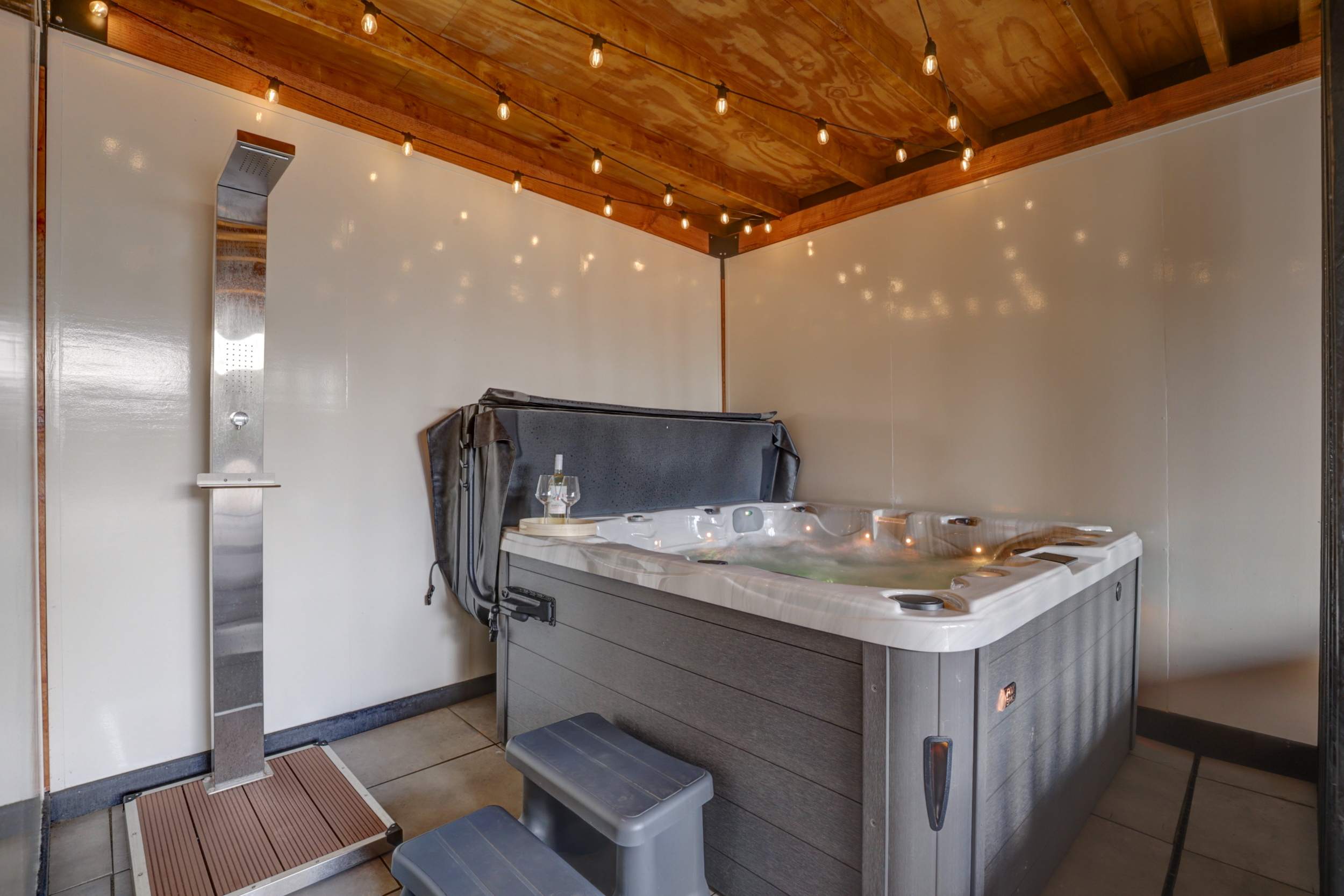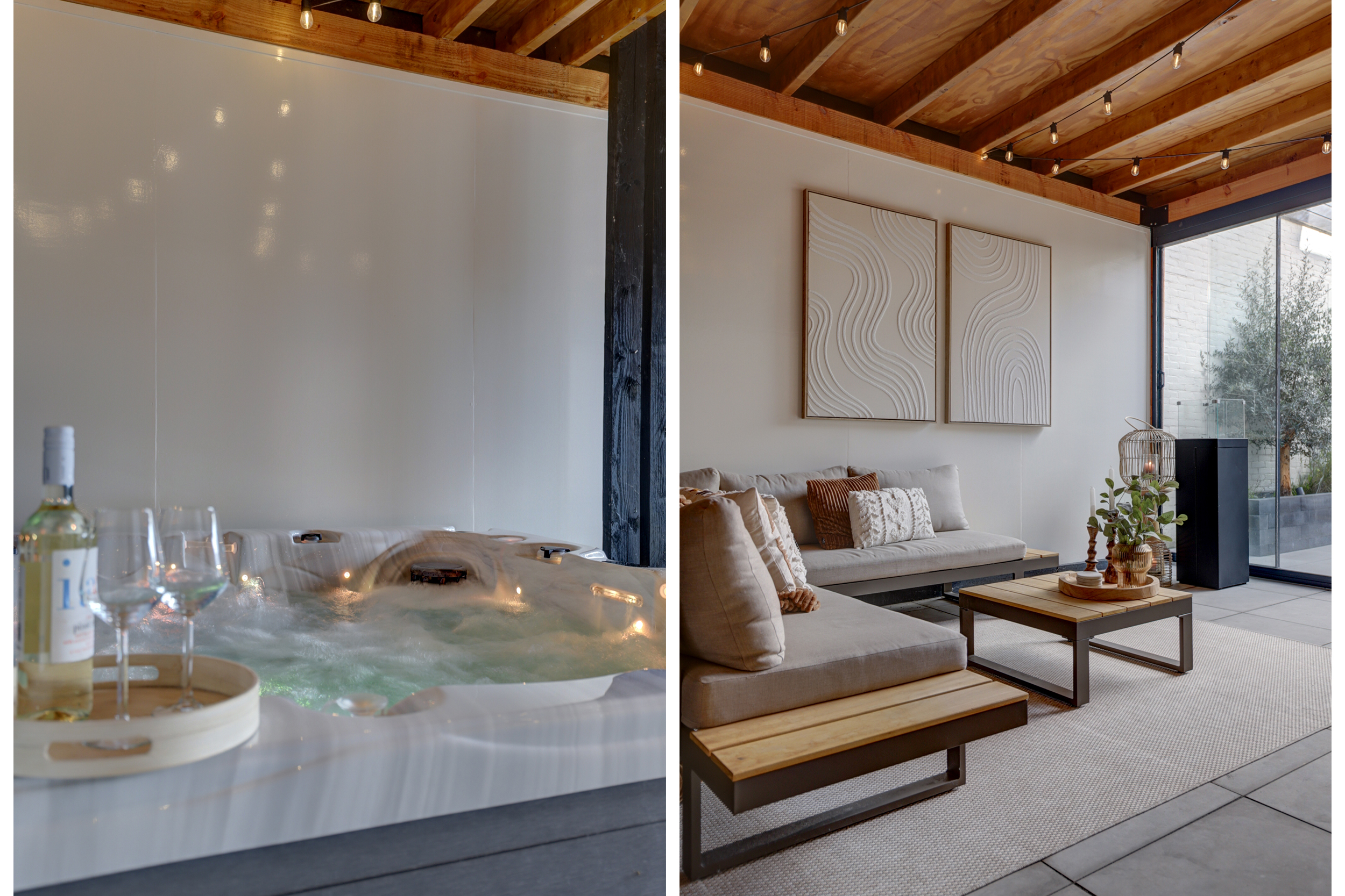 De tuin is volledig vernieuwd en met oog voor detail aangelegd. Direct aan de woning grenst een strak betegeld terras met zitgedeelte en groene borders met olijfbomen en vaste beplanting. Achterin de tuin bevindt zich een prachtige overkapping met afsluitbare glazen pui, houten balkenplafond, sfeerverlichting, zithoek en een ingebouwde jacuzzi – dé plek voor ontspanning in elk seizoen. De tuin is volledig omsloten en biedt veel privacy. Aan de voorzijde is er een ruime oprit met plaats voor meerdere auto’s. Aan de andere zijde van de woning is tevens een heerlijke tuin gelegen, alwaar u heerlijk van de zon kunt genieten! Deze tuin is eveneens strak betegeld, voorzien van groene borders en de onderhoudsarme kunstgraszone zorgt voor een verzorgd geheel.