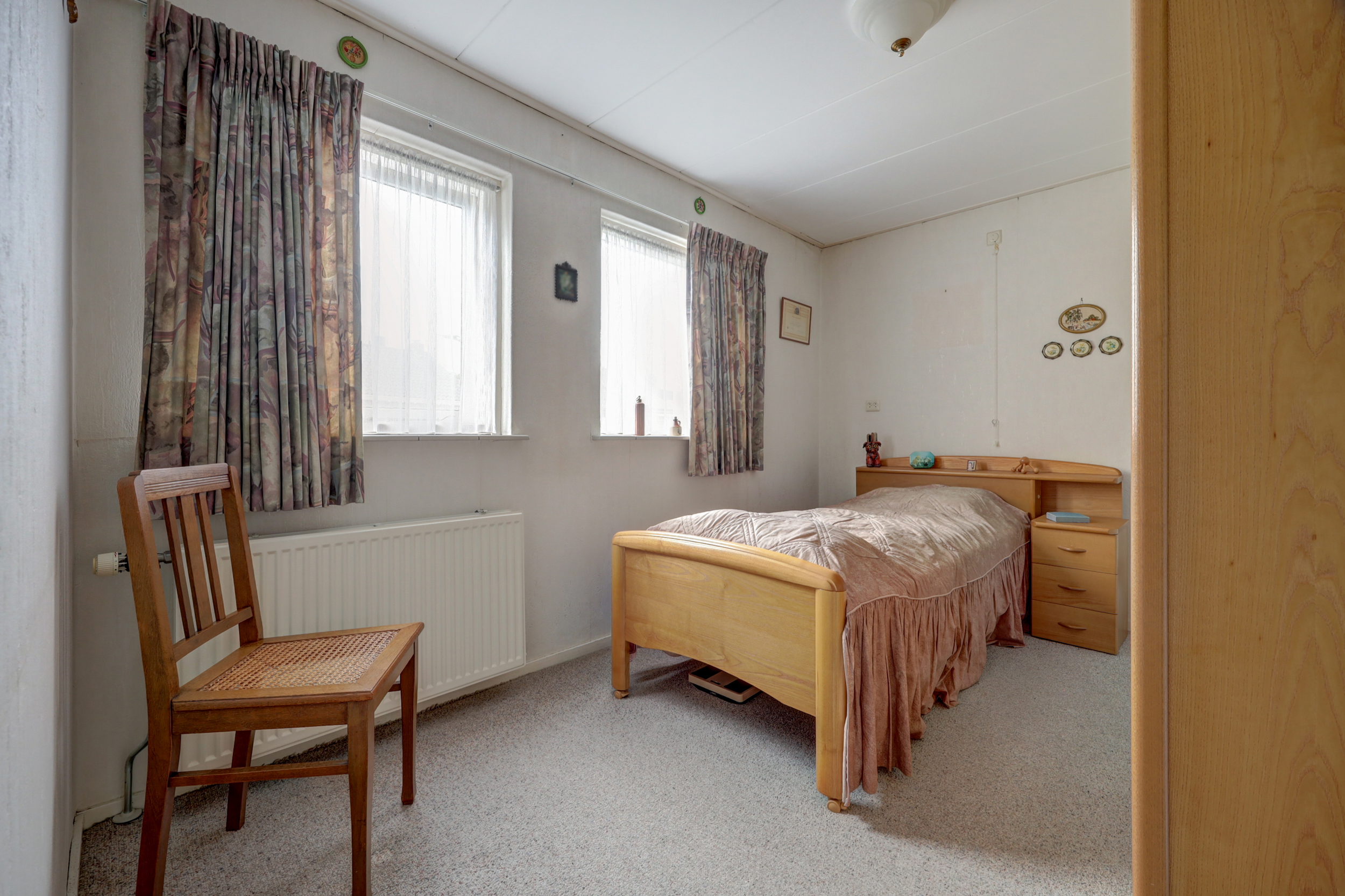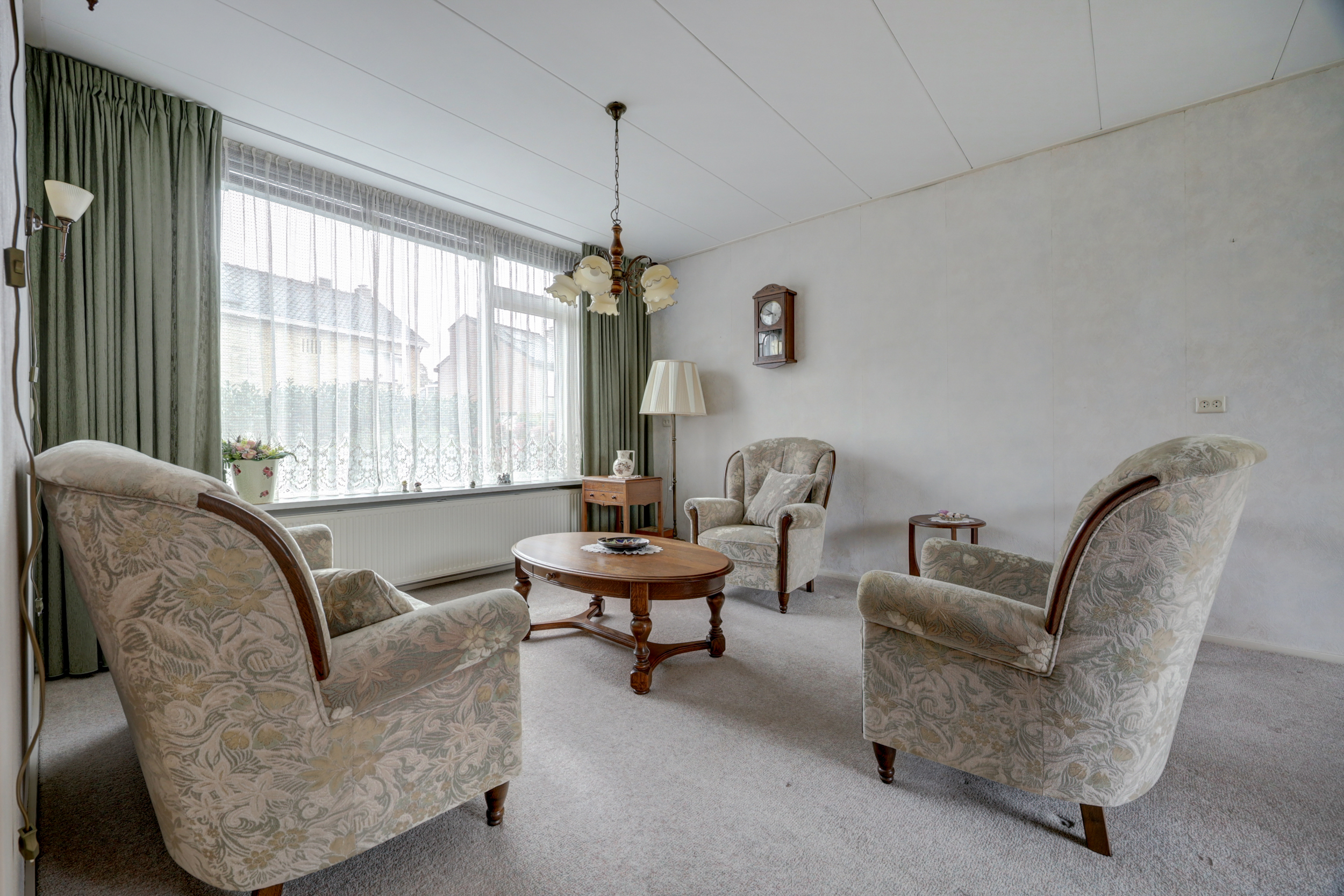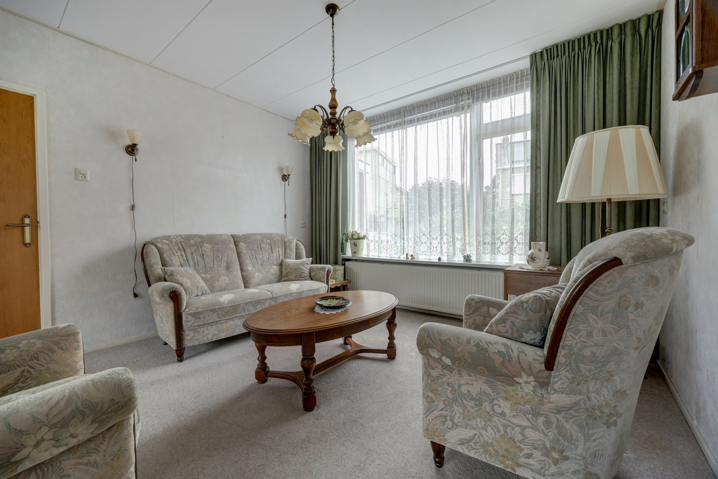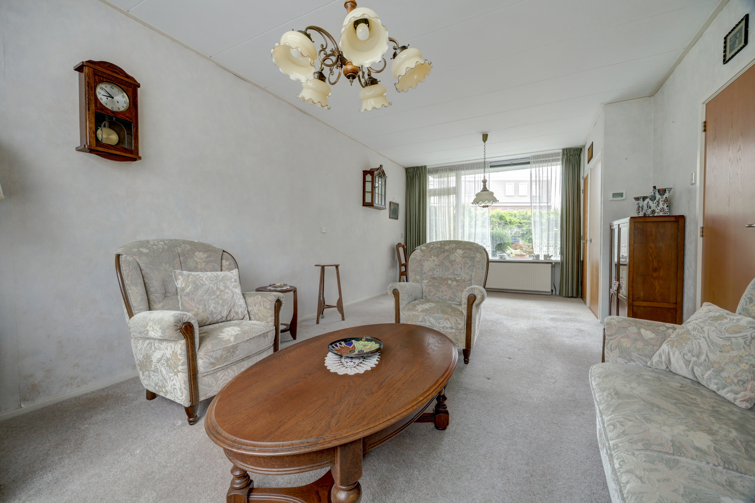De doorzonwoonkamer is heerlijk licht dankzij de grote ramen aan de voor- en achterzijde. Aan de voorzijde is een gezellig zitgedeelte gecreëerd waar u comfortabel kunt ontspannen met uitzicht op de rustige straat. De wanden zijn in lichte tinten afgewerkt en de vloer is voorzien van tapijt. Aan de achterzijde is voldoende ruimte voor een eettafel met zicht op de tuin. De keuken is praktisch ingedeeld met een lang, recht keukenblok met een groot werkblad en witte wandtegels. Er zijn een 4-pits gaskookplaat, een koelkast en een vriezer aanwezig. Een tuindeur geeft direct toegang tot de achtertuin. In de keuken bevindt zich tevens een vaste kast, altijd handig voor voorraad en extra bergruimte.
