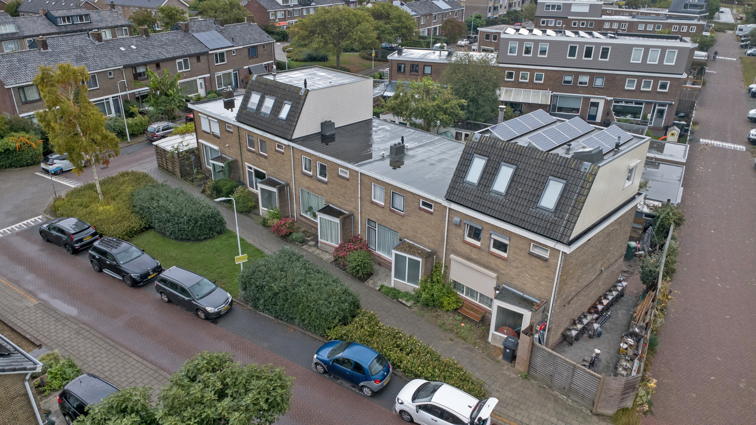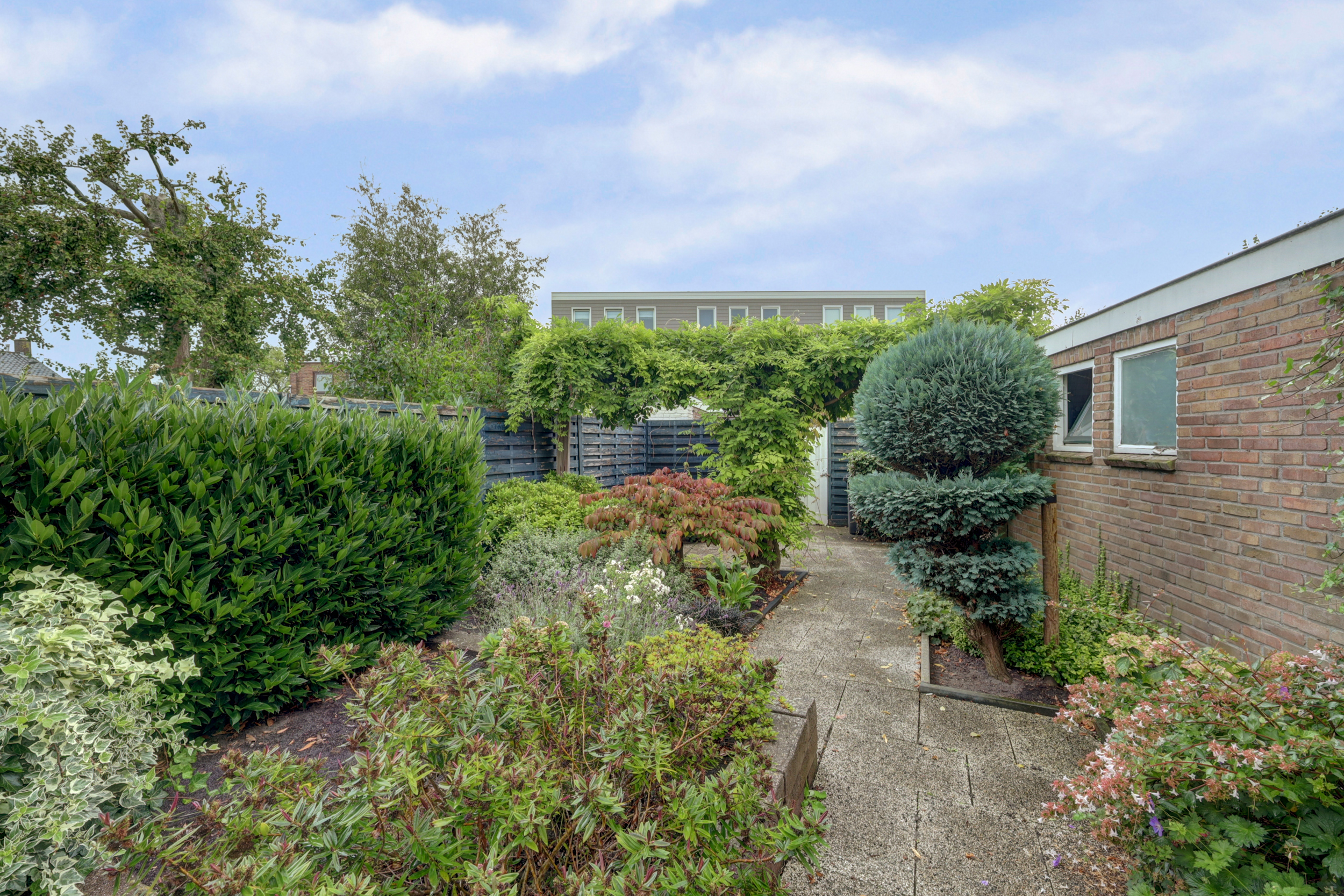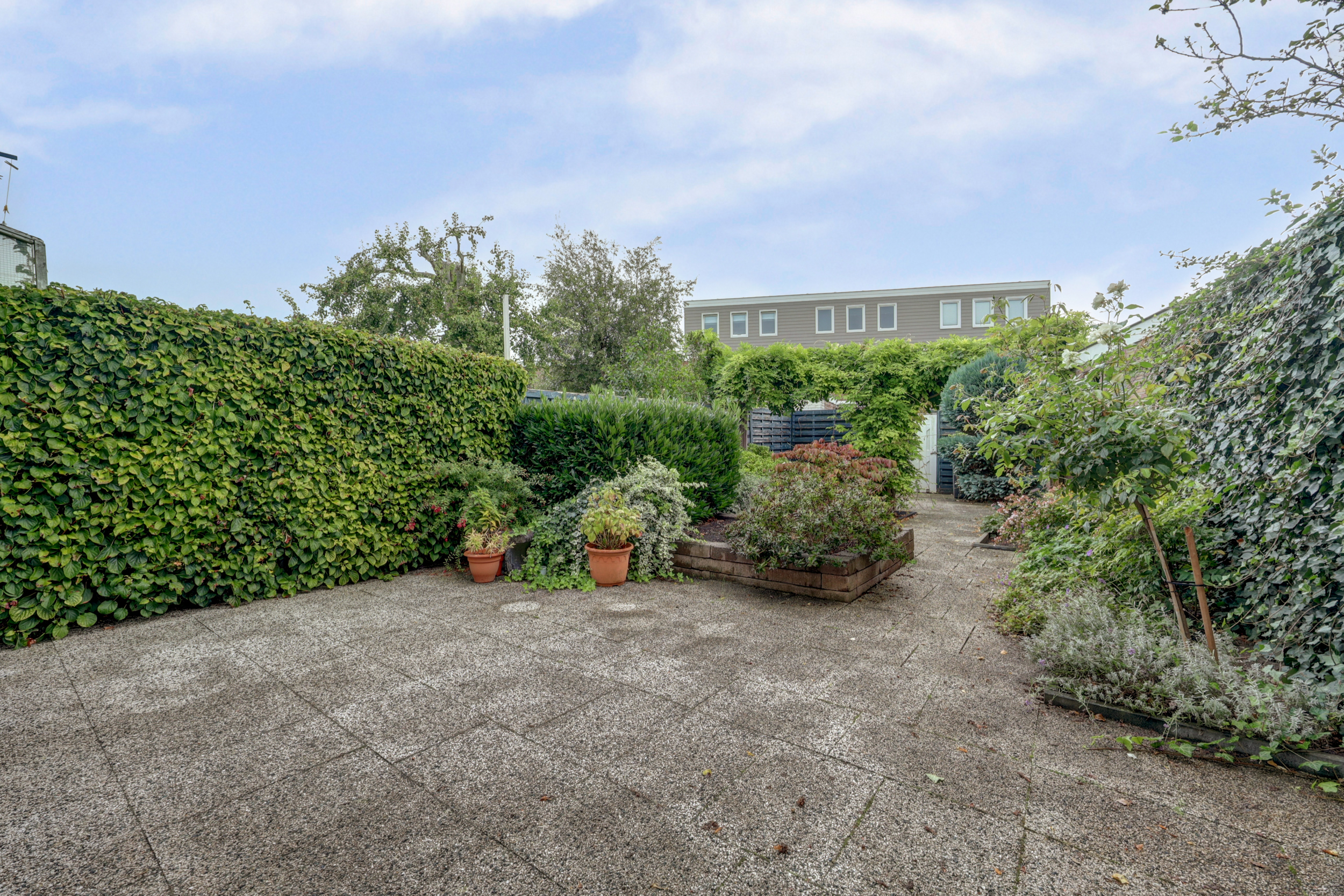 De achtertuin is een groot pluspunt: bijna 17 meter diep, groen en onderhoudsvriendelijk. Er is een combinatie van grijze tegels, opsluitranden en beplanting. Achterin staat een vrijstaande stenen berging en via de achterom bereikt u eenvoudig het achterpad. Direct aan de woning is een groot betegeld terras, zodat hier een fijne zitplaats gecreëerd kan worden.