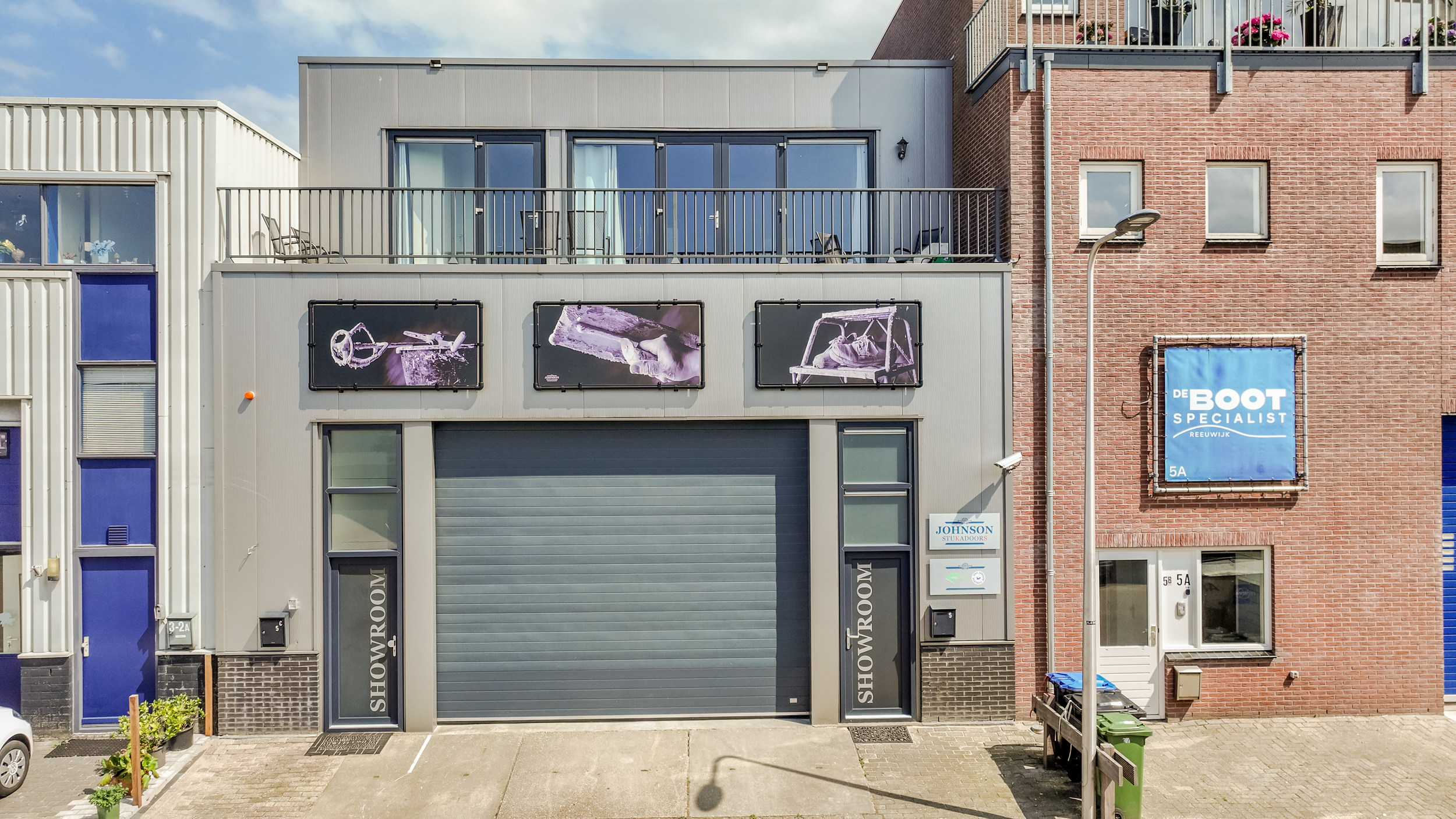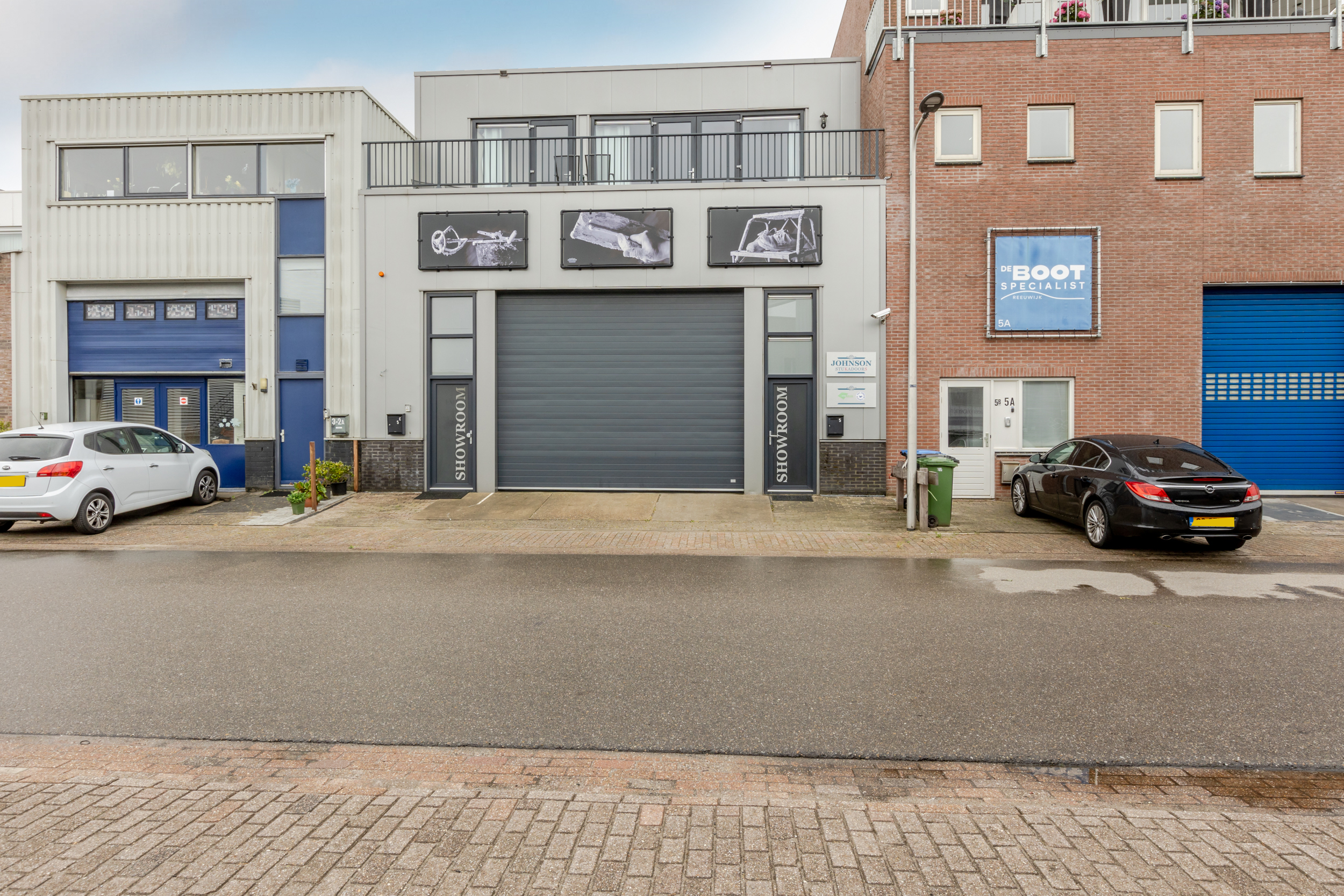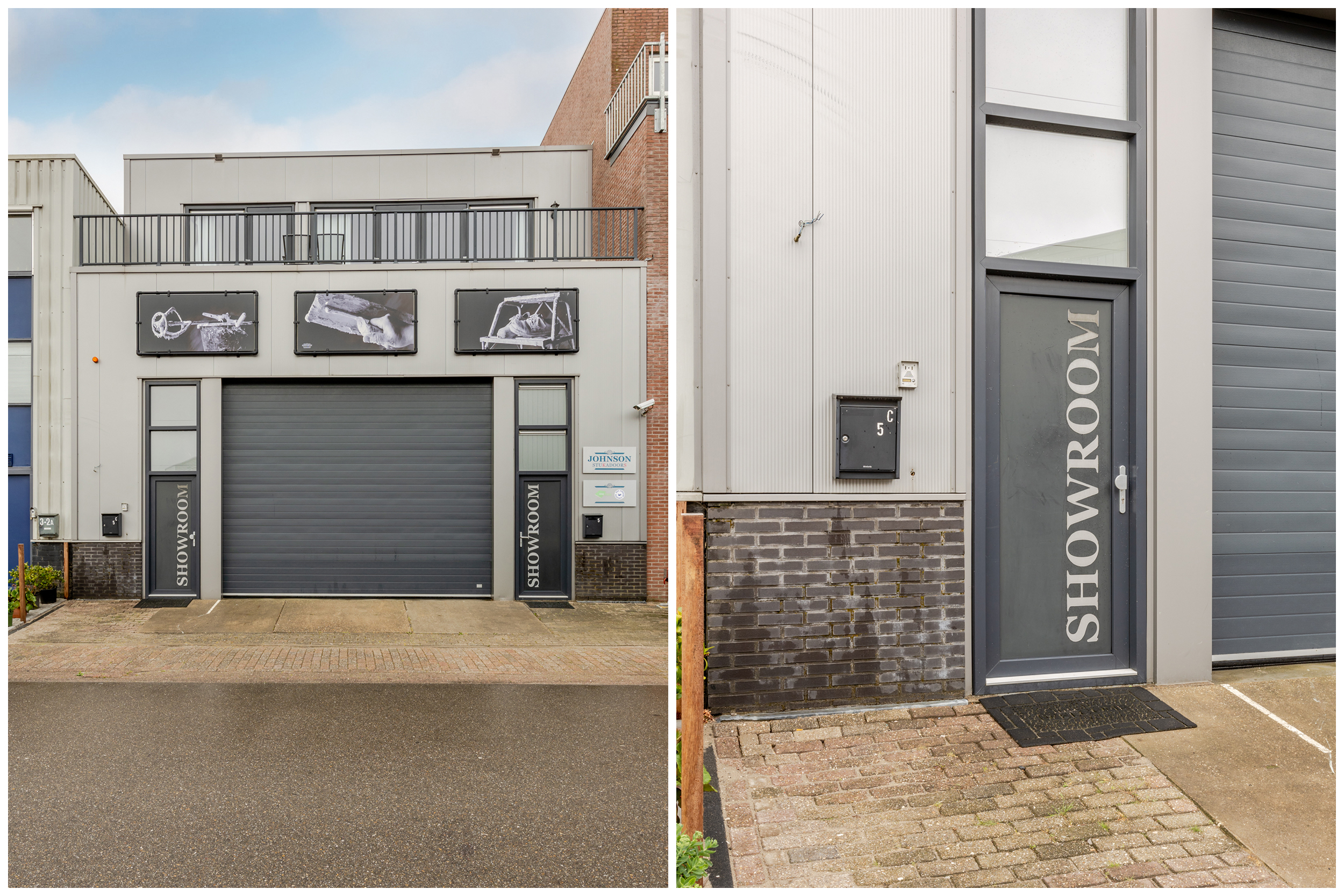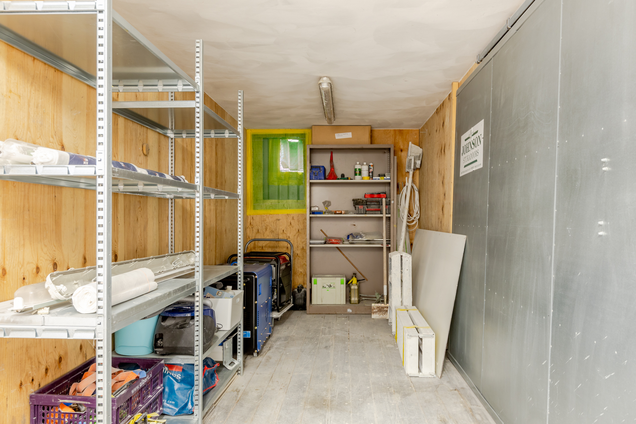 – achter de bedrijfsruimte is op het achterterrein een zeecontainer geplaatst. Deze is verbonden met de bedrijfsruimte, in deze verbinding is een schuifdeur aanwezig.